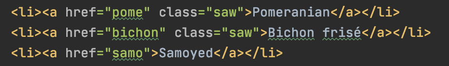 이렇게 a태그를 달고 있는 모든 내용에 특정 효과를 준 후, class값이 saw인 것들에 차별화된 디자인을 줄 수 있게 되는 것이다.