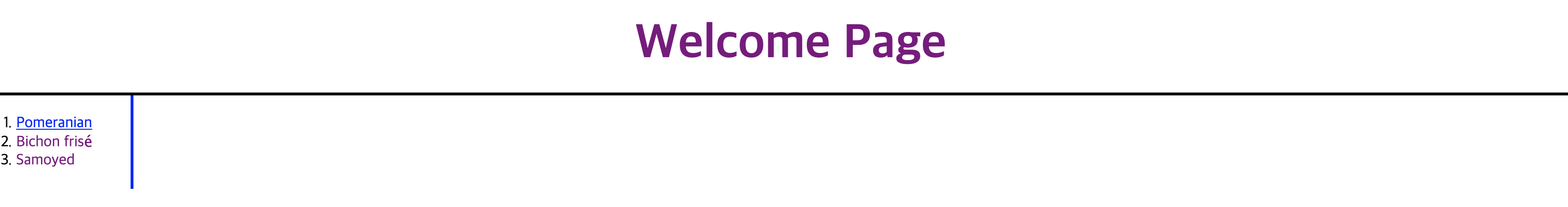 예를 들어 이렇게 리스트가 3개면 각각 font태그를 통해 디자인하기 쉽겠지만, 리스트가 1억 개가 있다고 한다면 하나하나 작업을 하다가 진절머리가 날 것이다. 사람들은 이것을 한 번에 묶어서 적용할 수 있는 새로운 기술을 고안해 냈고, 그것이 바로 css이다.