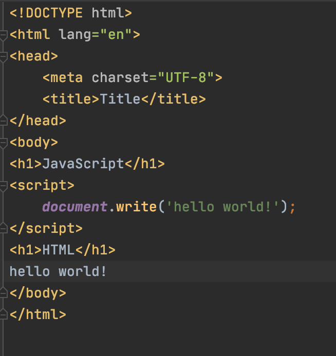 이렇게 script태그 안에서는 자바스크립트 문법으로 코드가 작성된 것을 볼 수 있다. 하지만 위와 같은 예시로는 자바스크립트의 차별화된 점을 확인하기 어렵다. 따라서 숫자를 통해 자바스크립트의 차별점을 확인해 보았다.
