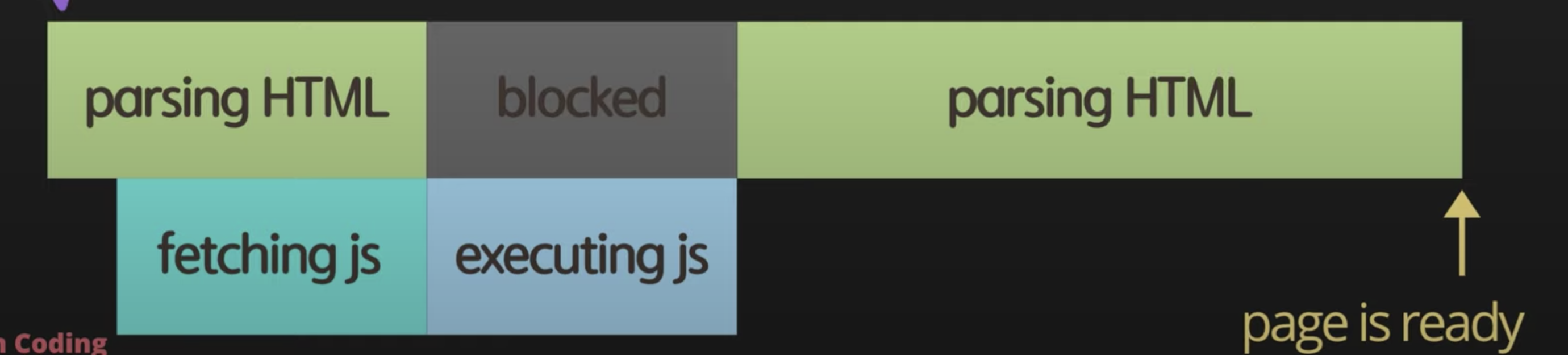 - script태그를 만나면 HTML parsing을 멈추고 해당 js파일을 다운로드한다.