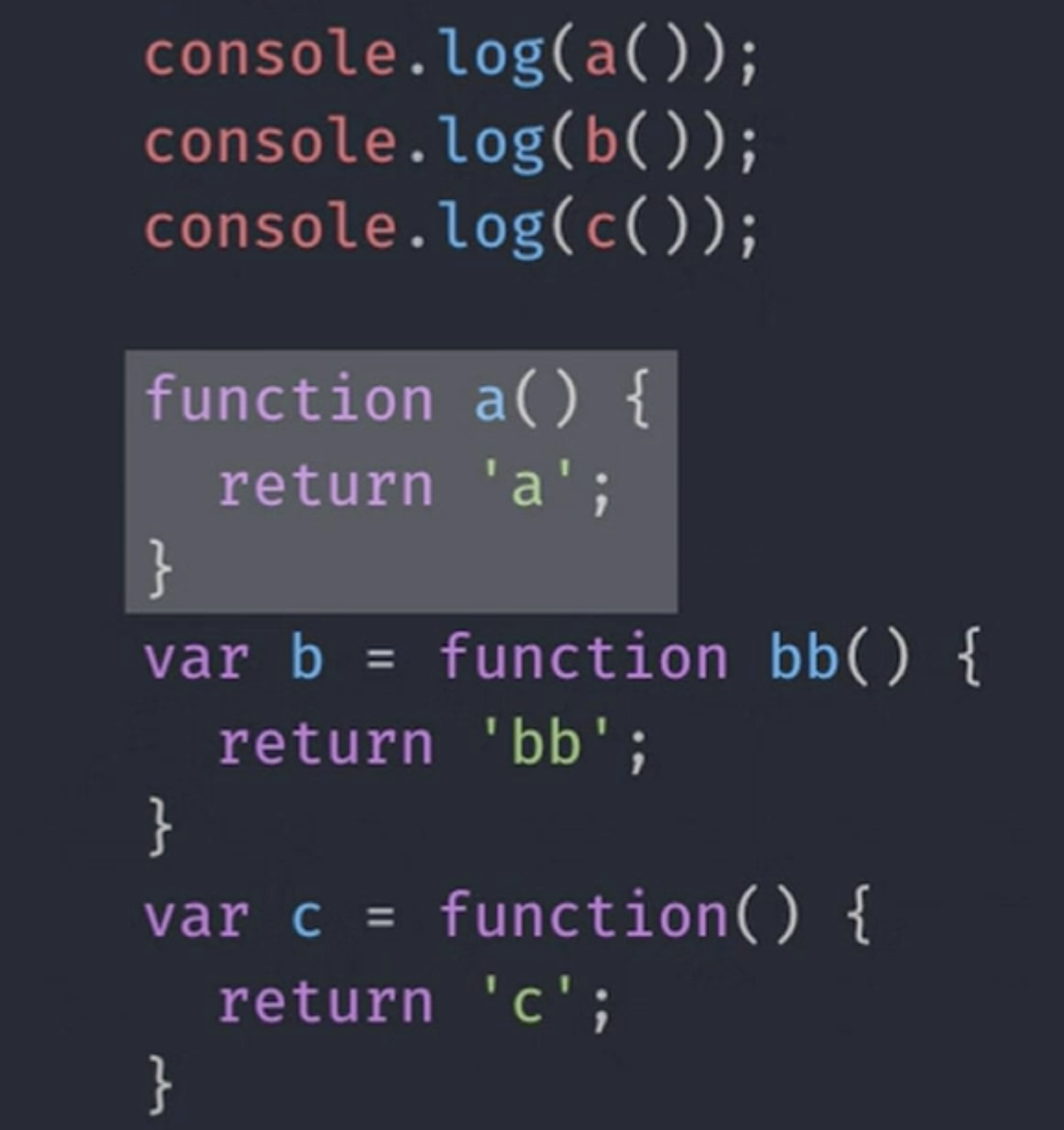 위의 호이 스팅이 끝나면 가장 상단에는 function a와 var b, var c가 올라갈 것이다.