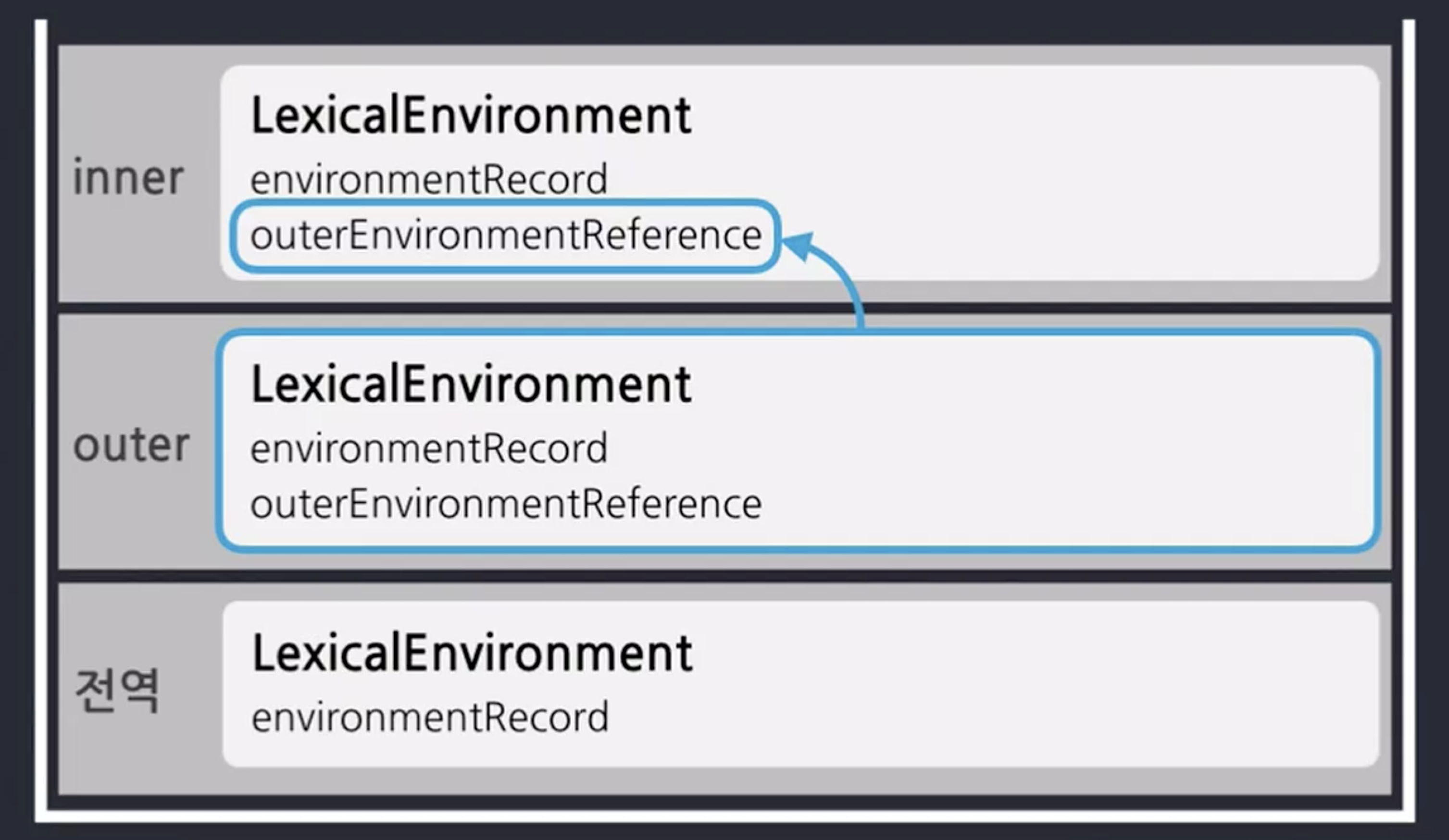 각 Environment에는 다시 environmentRecord와 outerEnvironmentReference가 있다.