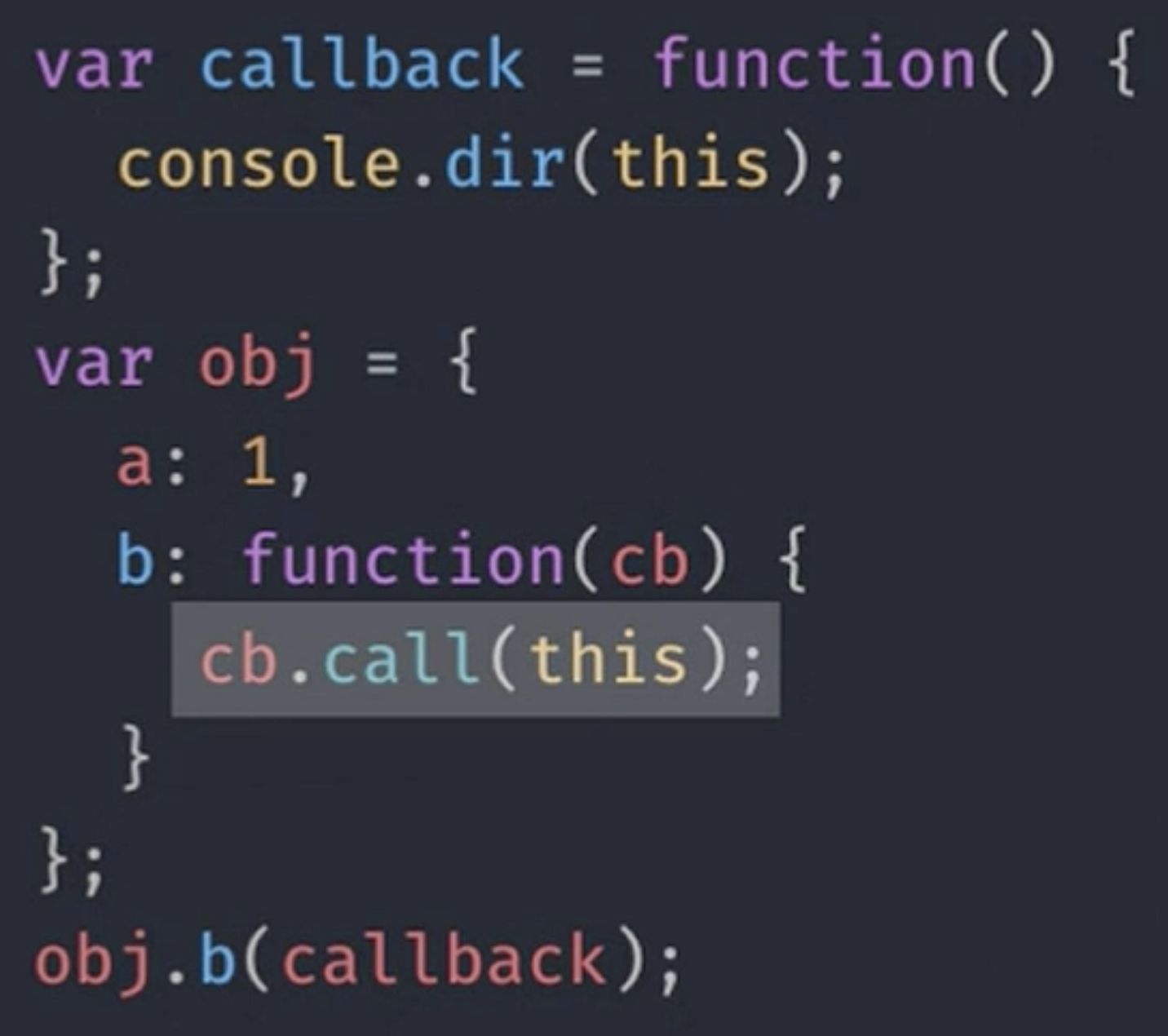위에서 호출 방식이 함수형태일때, 메소드형태일때를 보았다. 그렇다면 this키워드가 콜백함수내부에 들어있을때, 해당 콜백함수를 넘겨받은 함수에서 실행이되면 this는 무엇을 가르킬까 ?? 일반적으로는 그냥 호출방식이 함수일 때와 같다고 한다.