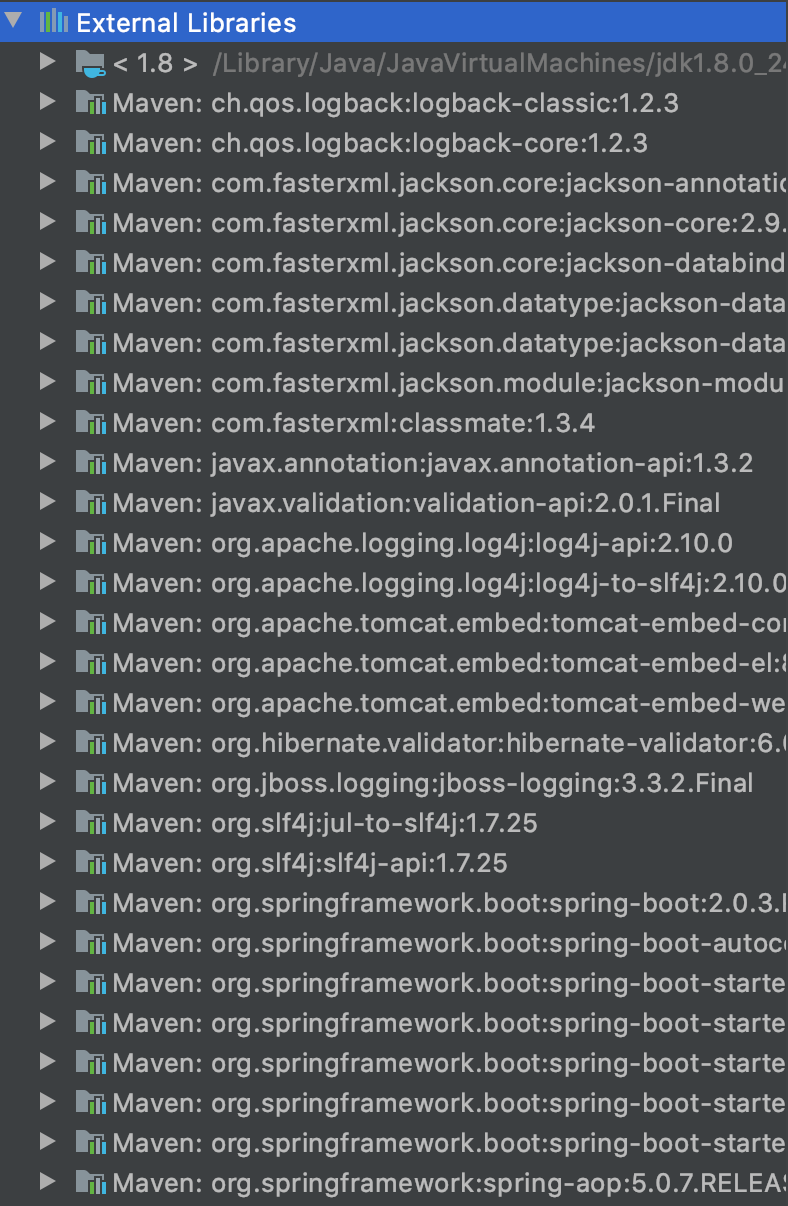 아래와 같이 프로젝트를 생성하고나면 매우 많은 라이브러리들이 자동으로 주입되어있는 것을 확인할 수 있다.