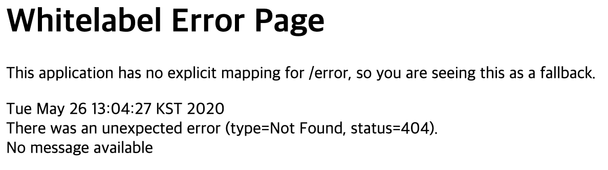 이 애플리케이션이 성공적으로 실행된다면 내장된 tomcat을 통해 8080포트로 접속했을때 아래와 같은 화면을 만날 수 있다.