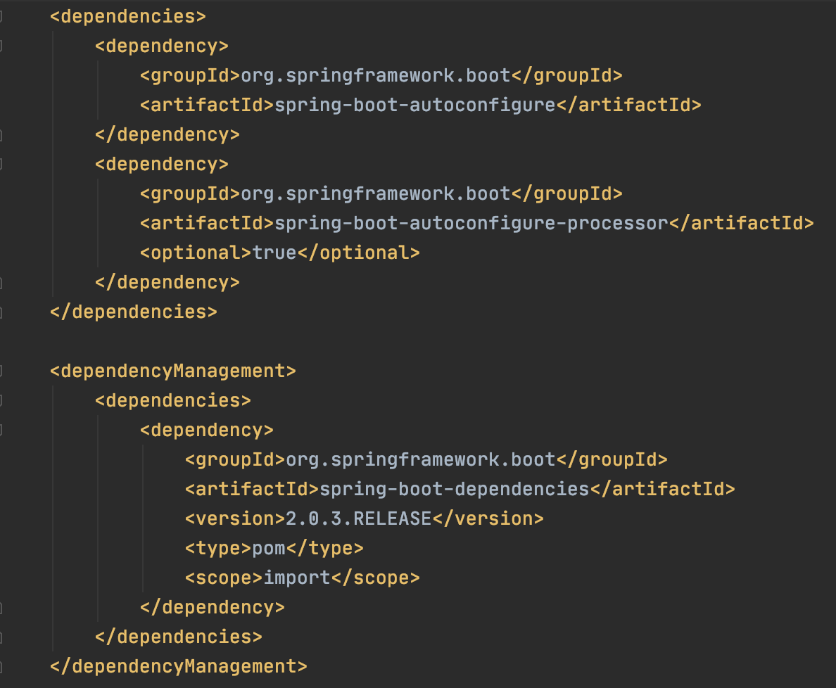 자동 설정을 위한 의존성을 등록하고 버전관리를 위해 dependencyManagement를 추가로 등록해주었다.