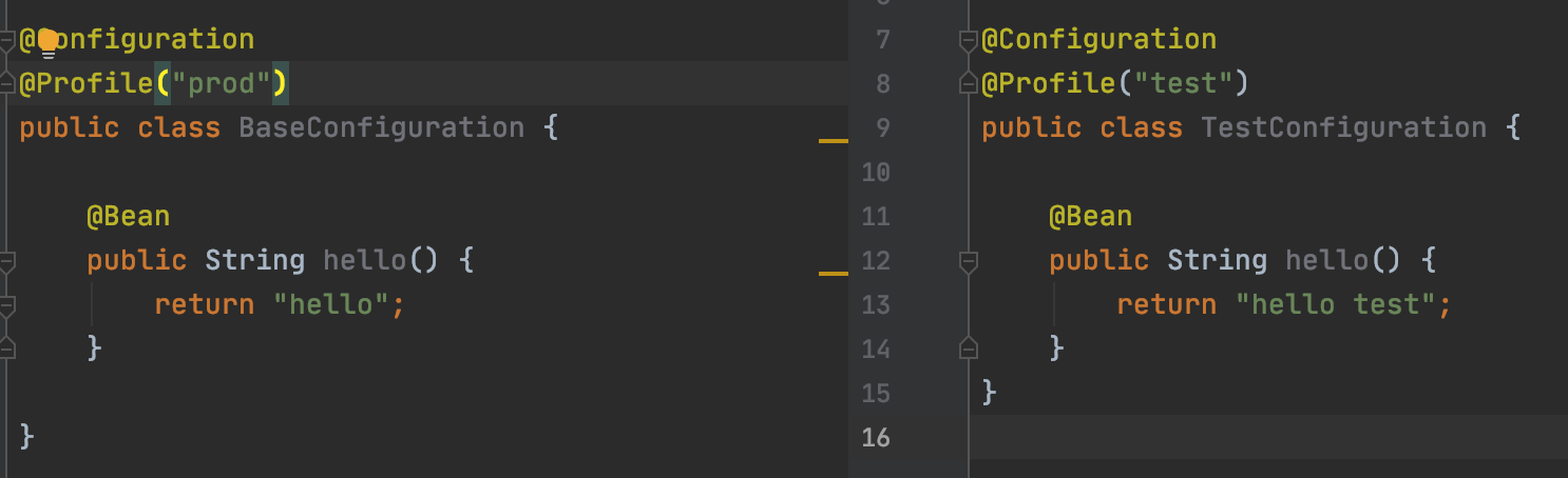 위와 같이 왼쪽은 Profile을 prod로 설정해야 해당 Bean이 주입되고, 오른쪽은 Profile을 test로 설정해주어야 Bean이 주입되는 것이다.